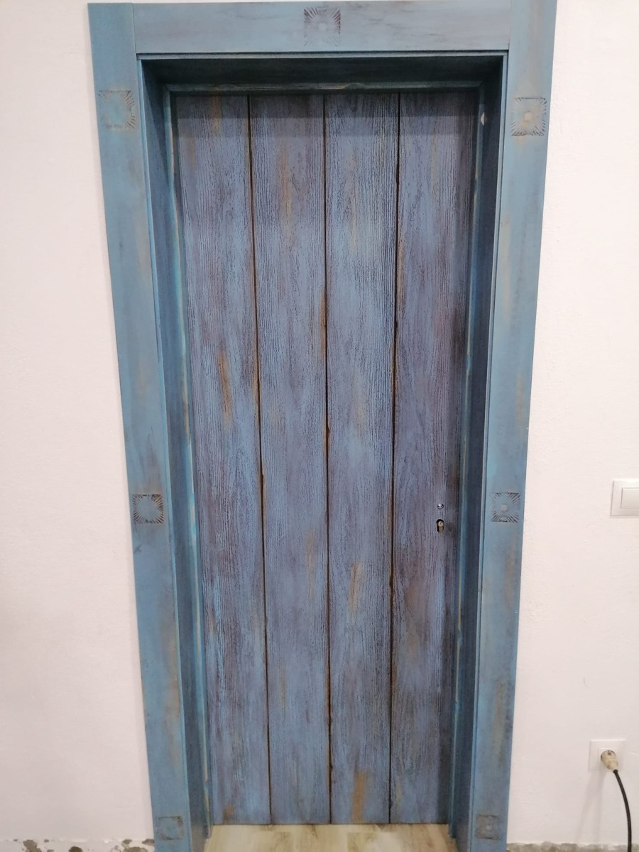 puerta de paso grabada azul viejo
