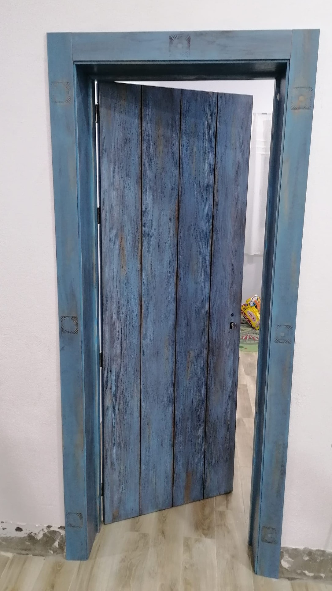 puerta de paso grabada azul viejo--