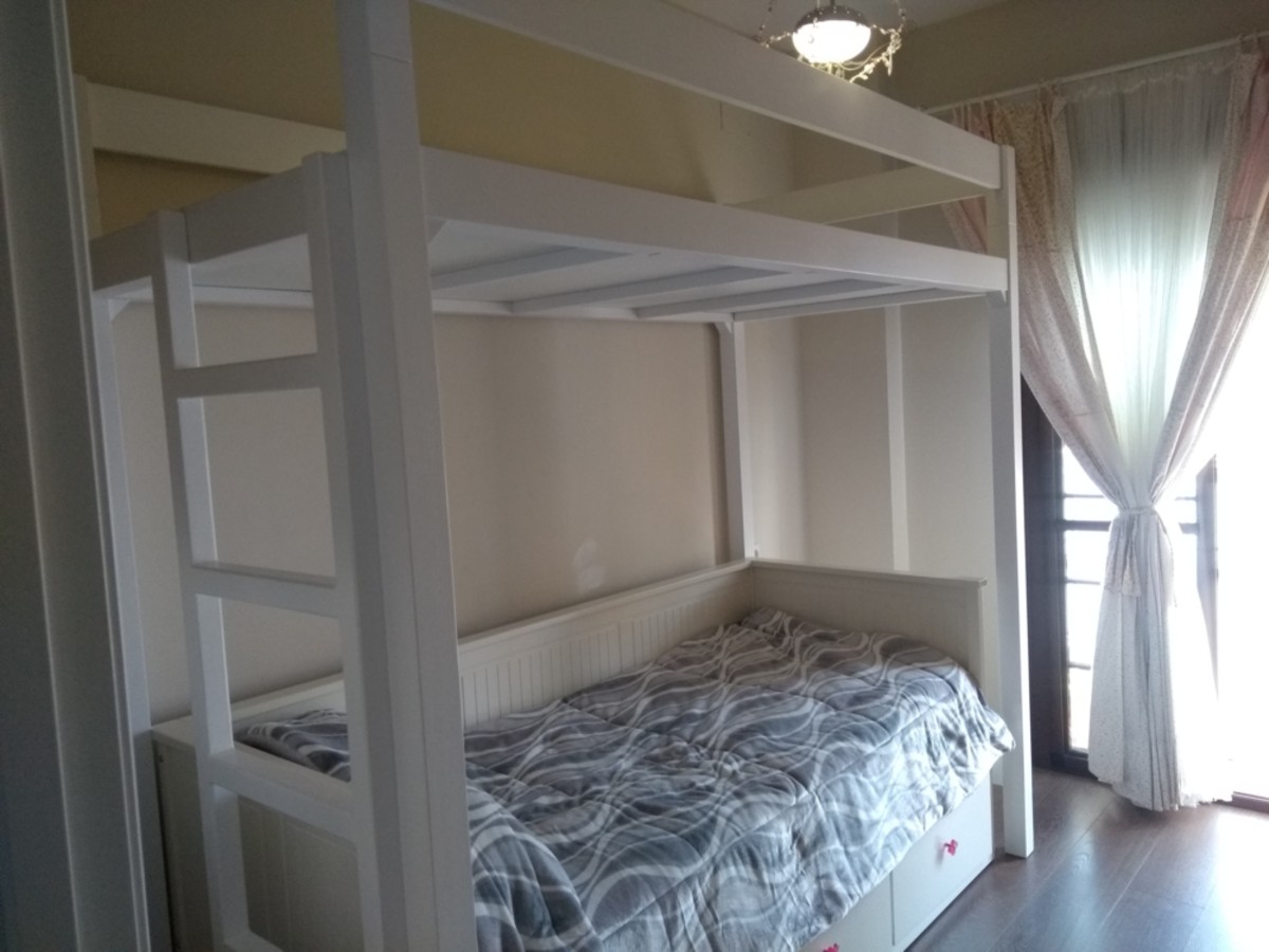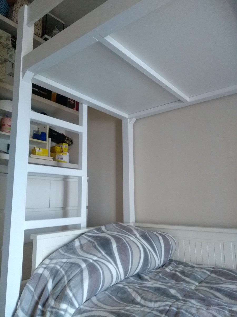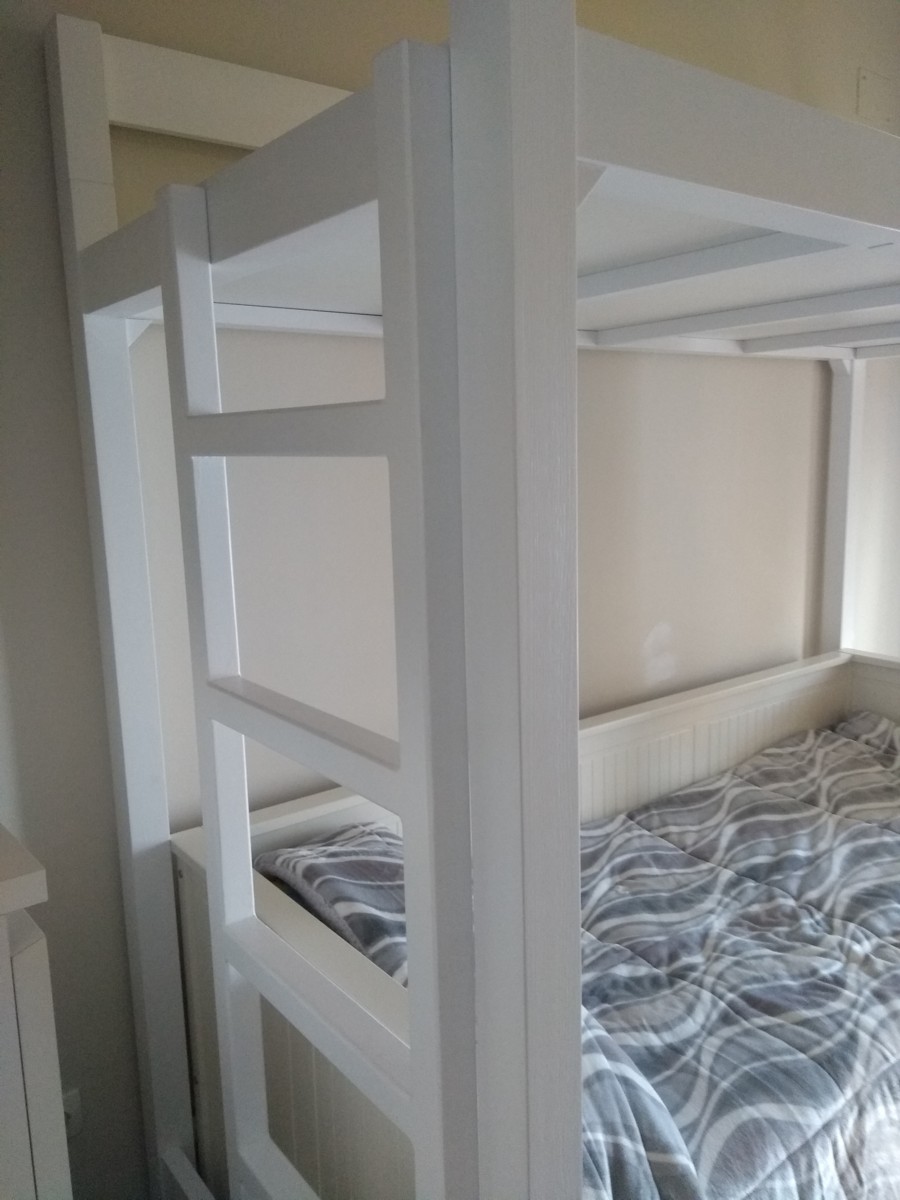 cama litera fuerte blanca con escalera--